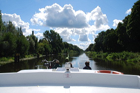 On entre dans le Vosskanal, très bucolique : champs, haies, boqueteaux, vaches aux yeux tendres, et une longue ligne droite bordée d’arbres. Sur la rive, les cyclistes nous doublent sans peine, spécialement ceux pour qui c’est un sport de compétition. C’est presque fatiguant, de les observer…