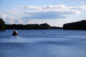 Une dernière écluse (Liebenwalde), et c’est le canal entre l’Oder et la Havel, qui va nous emmener très calmement jusqu’à Oranienburg, dernière halte avant Berlin. Nous sommes partis vers 11h (j’ai honte), nous y serons vers 18h00. Il faut dire qu’avant, il y a l’écluse de Lehnitz, dont la réputation n’est plus à faire. Cet ouvrage, qui commande l’accès nord de Berlin, est emprunté par tous les gros gabarits croisés sur le canal en venant. Ils sont évidemment prioritaires, et les bateaux de plaisance doivent attendre, ce qui est logique. Le hic, c’est qu’on ne sait jamais quand on va passer. Alors, on se colle derrière la file d’attente, et… on patiente. Nous avons eu pas mal de chance : notre séjour ne fut que d’un gros quart d’heure. Le prochain passage était prévu pour 17h45, finalement nous avons tous émigré à 17h tapantes, juste après qu’un pousseur et ses deux énormes barges soit passé.