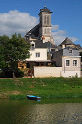Juste avant l’écluse de la Roussière, un très étonnant bac rouge et gris permet de franchir la rivière : il est mû par des roues à aubes et se nomme Le Trait d’Union. Cinq minutes plus tard, vous êtes devant un moulin qui compte dans la vie d’un touriste fluvial. Le vénérable moulin de la Roussière a été transformé en une somptueuse maison sur l’eau dont les toits en ardoise créent autant de points de vue pour ceux qui vivent à l’intérieur. L’écluse est attenante, et l’ancienne passerelle tournante rouge qui autorise des véhicules à pénétrer à l’intérieur des hauts murs fonctionne toujours.