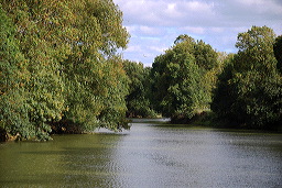 Sur la route, tout est vert. Je parle des arbres, bien sûr. L’escorte est assurée par une haie de saules d’où s’envolent parfois de hordes d’oiseaux blancs qui tournoient au-dessus de la rivière. Après l’écluse de Montreuil-Belfroy, voici Cantenay-Epinard, dont le nom viendrait d’une déformation du vieux français espinat (buisson dépines). Les ruines de piles de pont qui suivent dans la rivière proviennent de l’ancien pont détruit en 1940. Elles servent maintenant de plongeoir à mouettes et de décor à l’habitat du groupe d’oies qui nichent dans le pré derrière. Les mouettes, elles, viennent de la colonie située à gauche de l’embranchement de la Vieille Maine, qui rejoint la Sarthe.