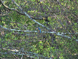 bleu électrique et jaune orangé, qui fuit au ras de l’eau