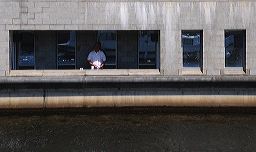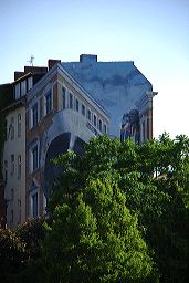 rangées de transats multicolores sollicitent la paresse, face au soleil. Le spectacle des bateaux-mouches et des embarcations privées ne s’arrête jamais. L’immeuble qui fait face au pont d’après, le Moltkebrücke, possède un ensemble de miroirs sur sa façade qui joue avec le soleil et le spectacle de la place en contrebas à la façon d’un