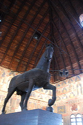 cheval de bois énorme, qui évoque irrésistiblement le Cheval