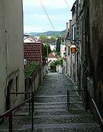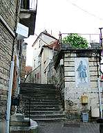 village. Les escaliers sont légion, ici. La statue de l’enfant
