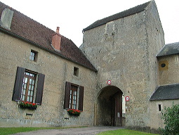 ancienne ferme fortifiée à la porte impressionnante précède