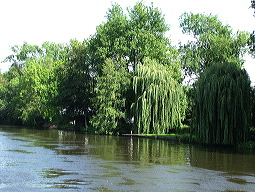 des regards par les grands arbres touffus qui la bordent. Nous y naviguons,