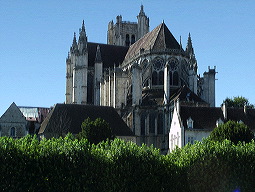 la cathédrale Saint-Etienne domine le paysage et la rivière.