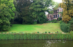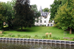 Il faut contourner l’île de Schwanenwerder, aux maisons réservées aux happy few… Brad Pitt et Angelina Jolie étaient supposés en acheter une, si l’on croit la rumeur. Quoi qu’il en soit, elles sont magnifiques, immenses, et bien cachées des regards indiscrets. Plus populaire est la plage du Wannsee, l’un des lieux de détente favoris des Berlinois depuis longtemps. Les grands fauteuils d’osier formant cabine rappellent ceux des plages de la mer du Nord. Au fond de l’entonnoir, on passe sous un pont, et on change de monde. Il faut réduire les tours moteurs au minimum, pour ne pas faire de bruit, et ouvrir grand les yeux. Ici se cachent parmi les plus belles maisons de Berlin. C’est Wannsee. A la taille des bateaux amarrés devant, on imagine ce qui peut se dissimuler derrière les arbres. Lorsque ceux-ci le permettent, de grandes maisons aux jardins magnifiques se laissent admirer. C’est ce que nous faisons, à petite vitesse, comme pour une visite d’un Beverly Hills sur l’eau. Il en est de plus modestes, également, mais toutes ont un charme certain, un cachet qui les rendent uniques.