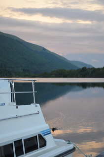 La base Le Boat de Laggan est tout au bout du Loch Lochy. Le long du ponton, le Clipper est prêt à s’élancer. Onze mètres, deux cabines pour quatre, c’est très confortable, et plein de petits rangements pratiques pour les courses et les vêtements. Le temps de tout organiser, il est déjà 23 h, en ne perdant pas de vue que nous avons perdu une heure dans le décalage horaire. Pourtant, il ne fait pas nuit. C’est un crépuscule clair sans lueur de soleil, une lumière venue de nulle part qui nous rappelle que nous sommes déjà hauts en latitude, à la hauteur du sud de la Suède.