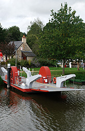 Juste avant l’écluse de la Roussière, un très étonnant bac rouge et gris permet de franchir la rivière : il est mû par des roues à aubes et se nomme Le Trait d’Union. Cinq minutes plus tard, vous êtes devant un moulin qui compte dans la vie d’un touriste fluvial. Le vénérable moulin de la Roussière a été transformé en une somptueuse maison sur l’eau dont les toits en ardoise créent autant de points de vue pour ceux qui vivent à l’intérieur. L’écluse est attenante, et l’ancienne passerelle tournante rouge qui autorise des véhicules à pénétrer à l’intérieur des hauts murs fonctionne toujours.