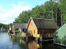 de Mirow, toute une série de chalets sur pilotis borde la rive.