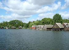 si jolie avec ses hangars à bateau de bois à toits de chaume,