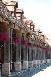 Le double champignon vert de deux châteaux d’eau annonce Auxonne, célèbre chez les bateliers pour son barrage à aiguilles. Il sera prochainement remplacé par un ouvrage plus moderne et moins dangereux pour ceux qui l’entretiennent. Ici, à l’ombre de l’église Notre-Dame, un jeune homme de dix-neuf ans vint vivre en tant que lieutenant d’artillerie et y resta trois ans. Il se nommait encore Bonaparte. Nous étions en juin 1788, un an avant la Révolution… Sa statue, place d’Armes, nous le montre tel qu’il était au pont d’Arcole, sous les yeux d’un ange, tout là-haut, au faîte de l’église. A quelques pas, les grosses poutres de l’arsenal d’artillerie déroulent toujours leur toit de tuiles plates à lucarnes tout du long de l’ancienne cour pavée de la caserne, et dans les rues, des militaires flânent ou se hâtent. Les treillis camouflés ont remplacé les uniformes chamarrés des débuts de la République, mais la tradition demeure. Auxonne est belle, historique et singulière, et ce n’est pas son clocher vrillé qui dira le contraire (environ une centaine en France seulement). On redescend vers la Saône par le vieux château et sa tour ronde, que Louis XI fit construire pour surveiller les Bourguignons tous proches. Le long du quai, les remparts de la forteresse du XVIe siècle et ses échauguettes gardent encore les rives de la rivière.