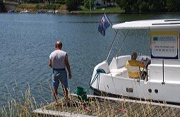 Au retour de notre balade, nous avons eu la surprise d’un pêcheur venu installer sa gaule juste devant la terrasse arrière de la Pénichette. Nous sommes passés à table sans que cela ne le perturbe le moins du monde. L’homme est resté à moins d’un mètre de notre table à nous regarder manger sans la moindre vergogne, alors que le ponton était par ailleurs totalement vide. La canne sifflait tout près, les asticots grouillaient dans les seaux du petit homme chauve et bedonnant qui est resté à transpirer sous le soleil jusqu’à en devenir écarlate. Lorsqu’il est enfin parti, nous en étions au dessert, et passablement énervés. Il n’a rien pris. J’en étais ravi. Renseignement pris, l’individu est un habitué de la chose. Le nouveau port lui changera peut-être les idées…