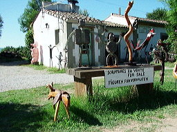sculpture. Accueillis par une bordure de cannas rouges, jaunes et oranges,