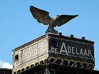 un aigle de pierre gigantesque, qui nous toise, toutes ailes déployées,