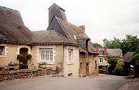 village fleuri aux maisons anciennes. L’église du Xème-XIIème