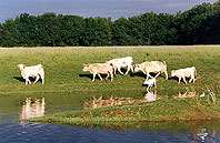 cœur joie sur une eau plate comme un miroir. De petits veaux encore
