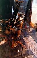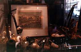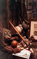 utilisant l'engin. Dans une autre vitrine, quelques fourneaux sculptés en écume de mer. Une pipe au long tuyau dont le fourneau a trouvé refuge au sein d'un coquillage exotique fait penser à Gauguin dans les mers du Sud.