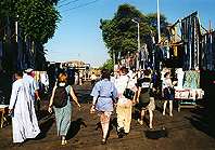 Nous traversons les souks, où les vendeurs nous proposent des chemises
