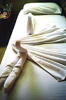 Lorsque nous sommes rentrés nous coucher, un crocodile en serviettes
